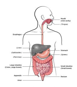 The digestive tract comprises the mouth, esophagus, stomach, small intestine, and large intestine. It’s responsible for breaking down food, extracting the nutrients, and removing any unusable material and waste products.